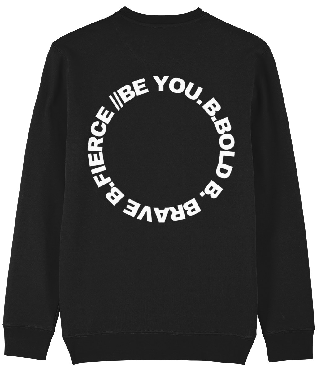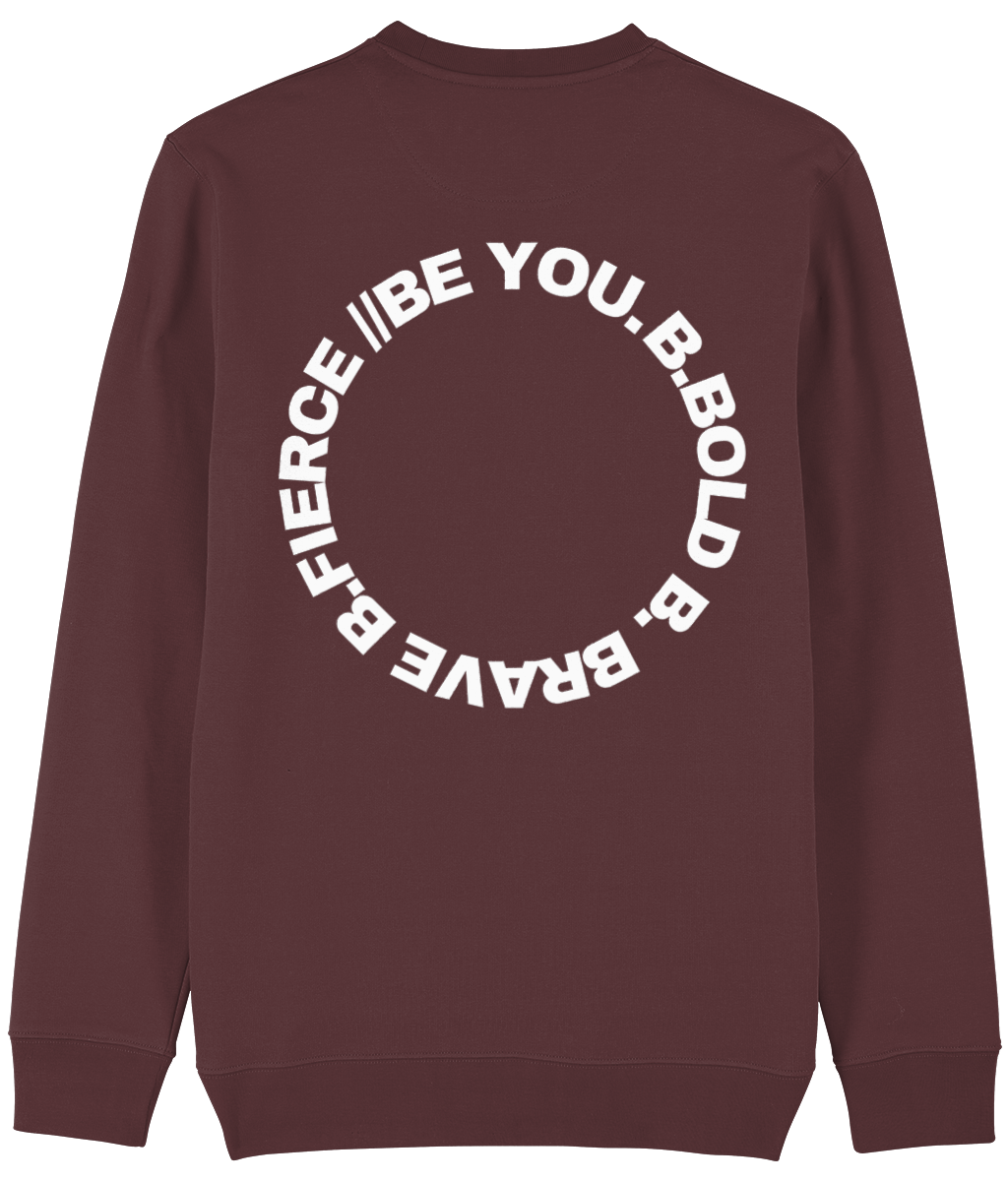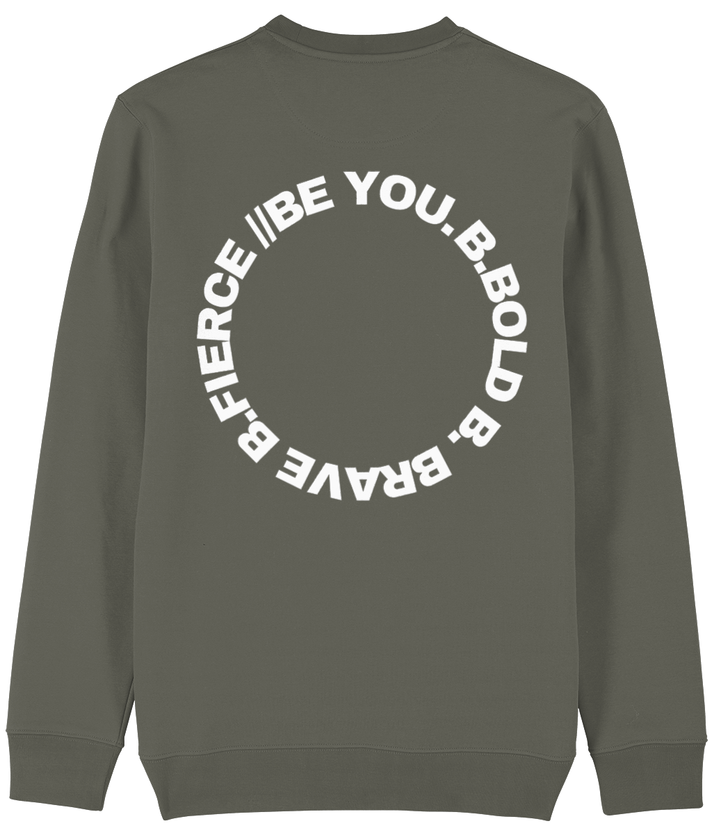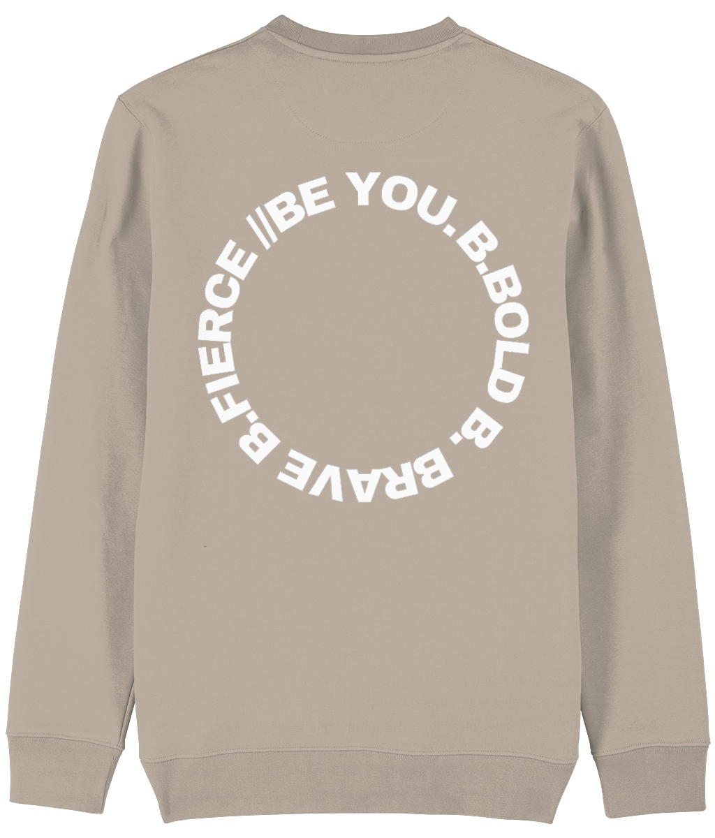 De Be You. Always. Sweatshirt is gemaakt voor dagen waarop comfort, warmte en kracht samenkomen. De dikkere, hoogwaardige stof geeft deze crewneck een stevige feel en houdt je heerlijk warm. Het is de perfecte balans tussen cozy en stijlvol. Op de rug prijkt een krachtig cirkelvormig Be You-logo met de woorden Be Bold, Be Brave, Be Fierce, Be You. Deze cirkel staat symbool voor groei, kracht en het voortdurend terugkeren naar je eigen identiteit: wie je bent, bepaalt jouw kracht.